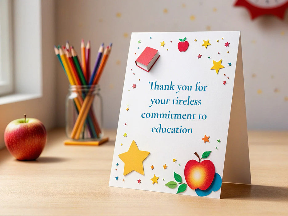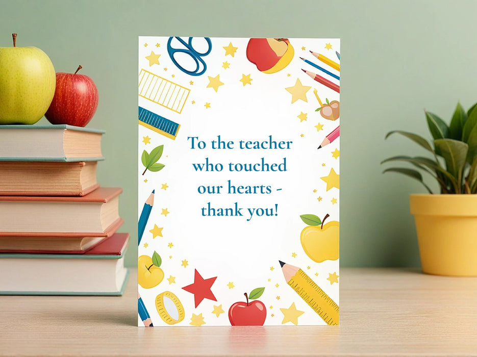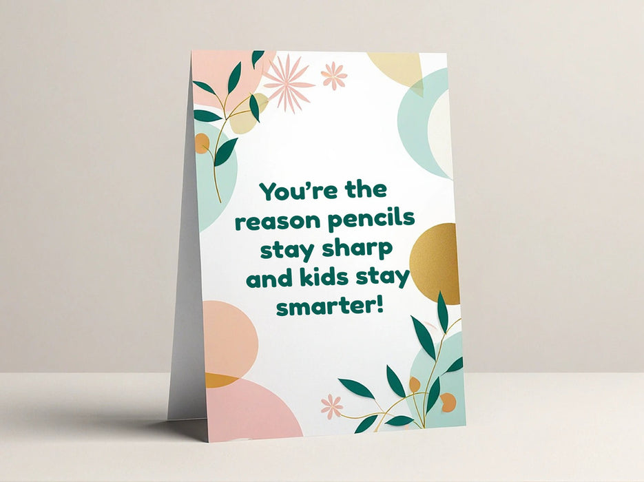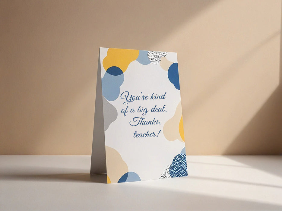 Design and print personalized teacher appreciation cards online! Say thank you to your amazing teachers with a unique card created with our easy-to-use tools. Choose a template or create your own, add your message and student names, and we'll take care of the rest. Show your appreciation in a memorable way!