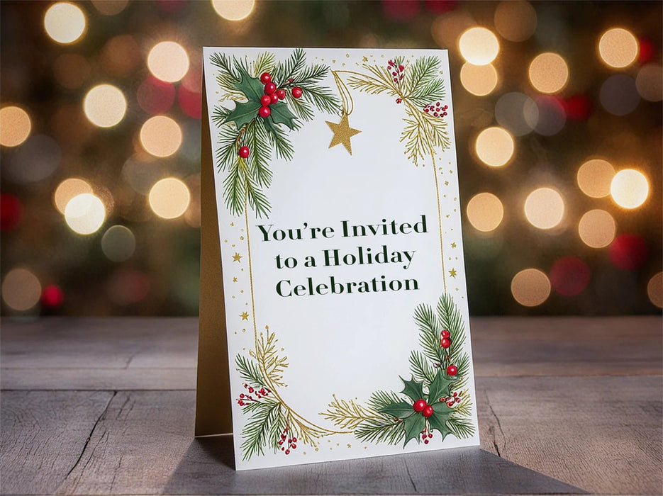 Get into the festive spirit with our Holiday Party Invites—designed and printed online with ease! Choose from a wide range of seasonal templates or upload your own design to create the perfect invitation for your celebration. Whether you're hosting a cozy gathering or a grand holiday bash, our invitations are fully customizable with your event details, colors, and photos. Printed on premium cardstock with vibrant finishes, each invite is crafted to impress and delivered right to your door. Fast turnaround, professional quality, and holiday charm—everything you need to start your party right!