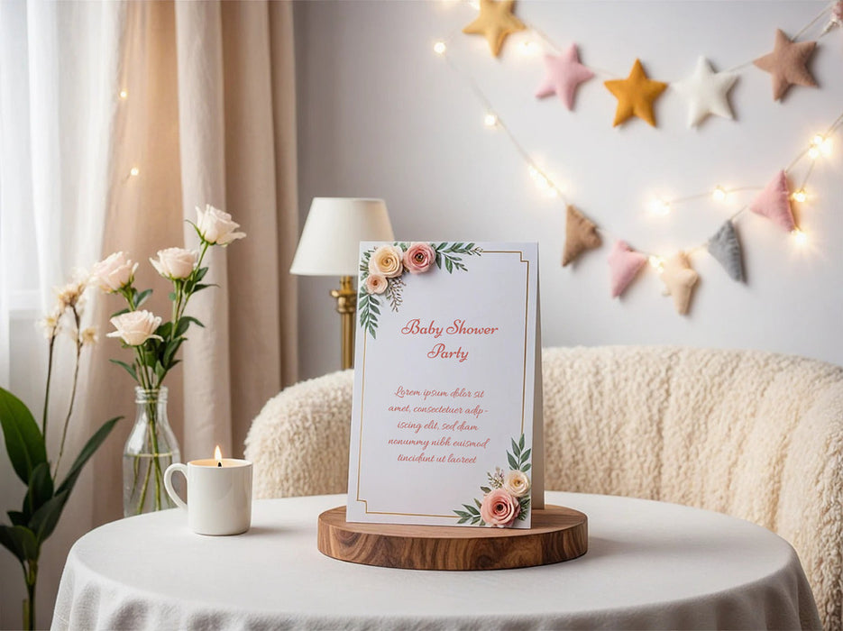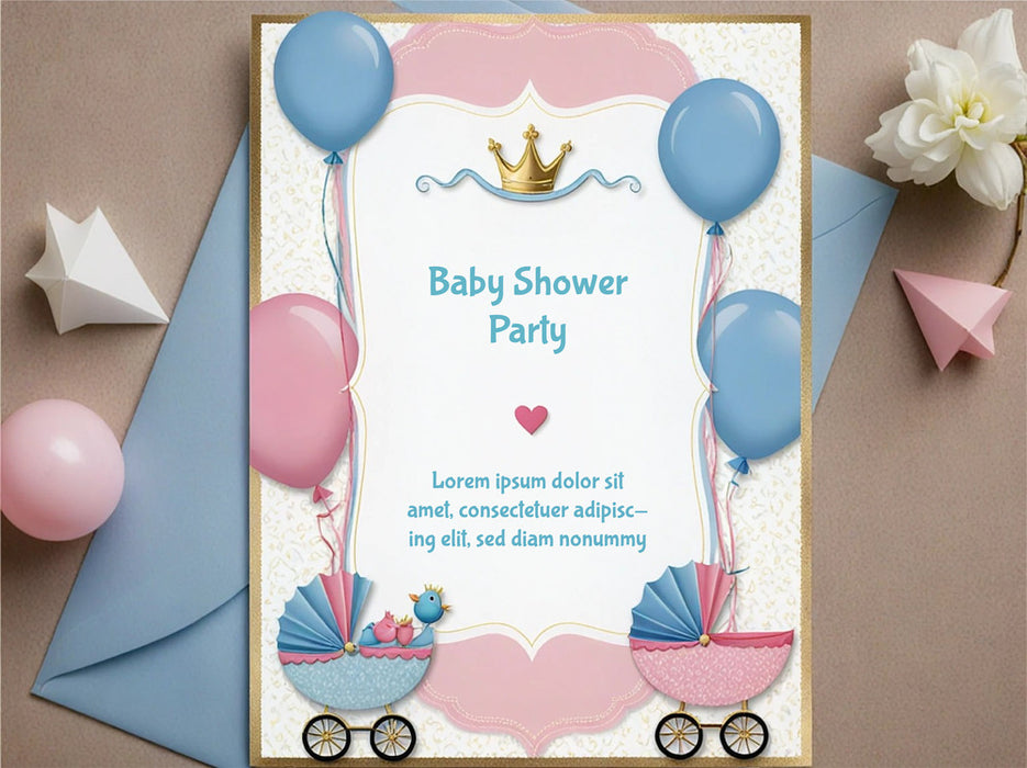 Create and print custom Baby Shower Party Invitations online to celebrate your special day in style! Choose from adorable templates, personalized designs, and premium-quality printing options. Perfect for welcoming your little one with a beautiful, professionally crafted invitation. Easy ordering and fast delivery!