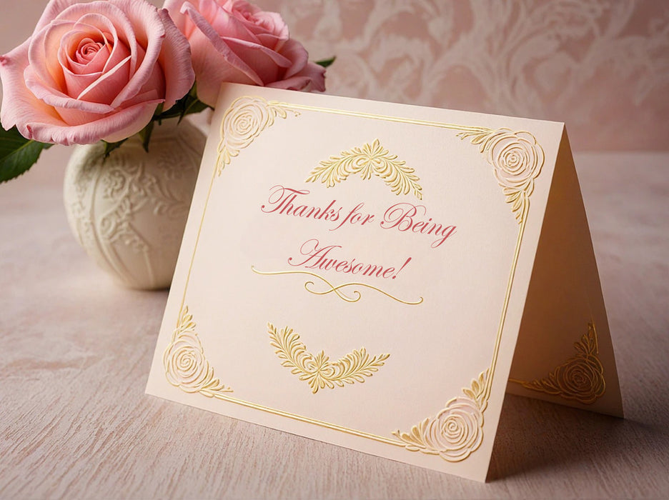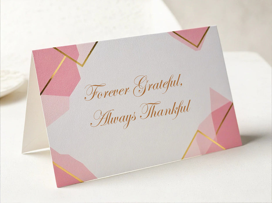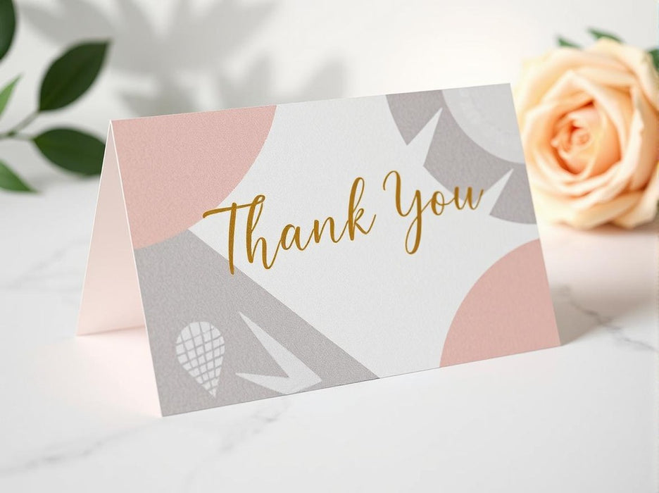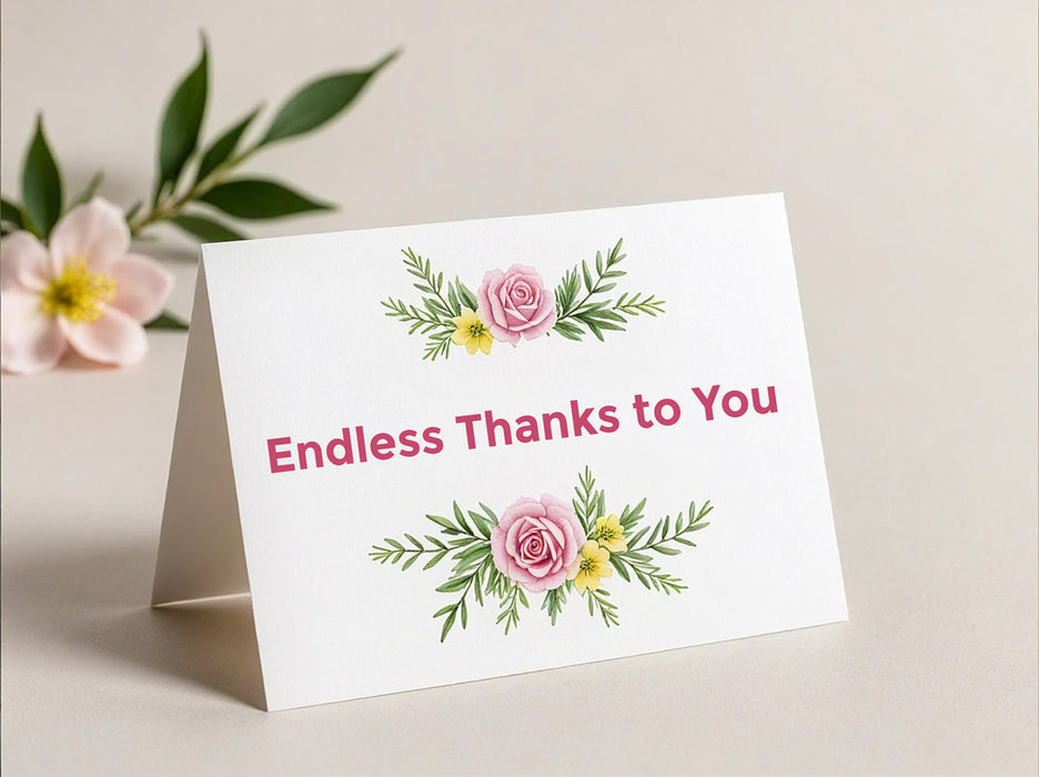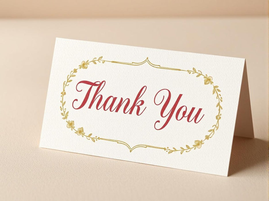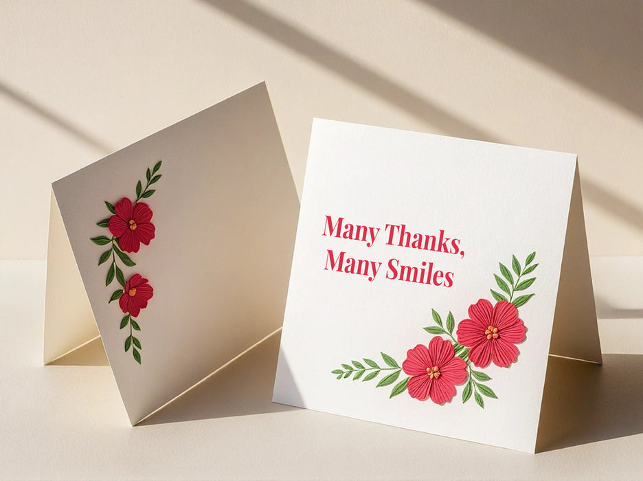 Create personalized Folded Thank You Cards with ease using our online design and print services. Choose from a range of styles, customize with your own text and images, and enjoy professional-quality printing for any occasion. Perfect for weddings, business appreciation, or heartfelt messages!