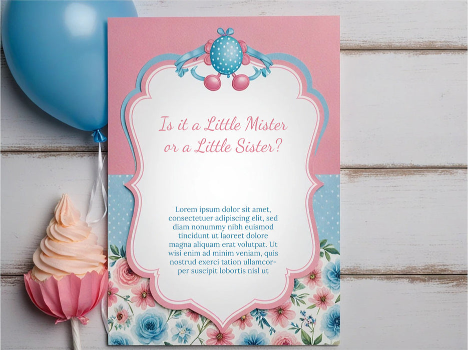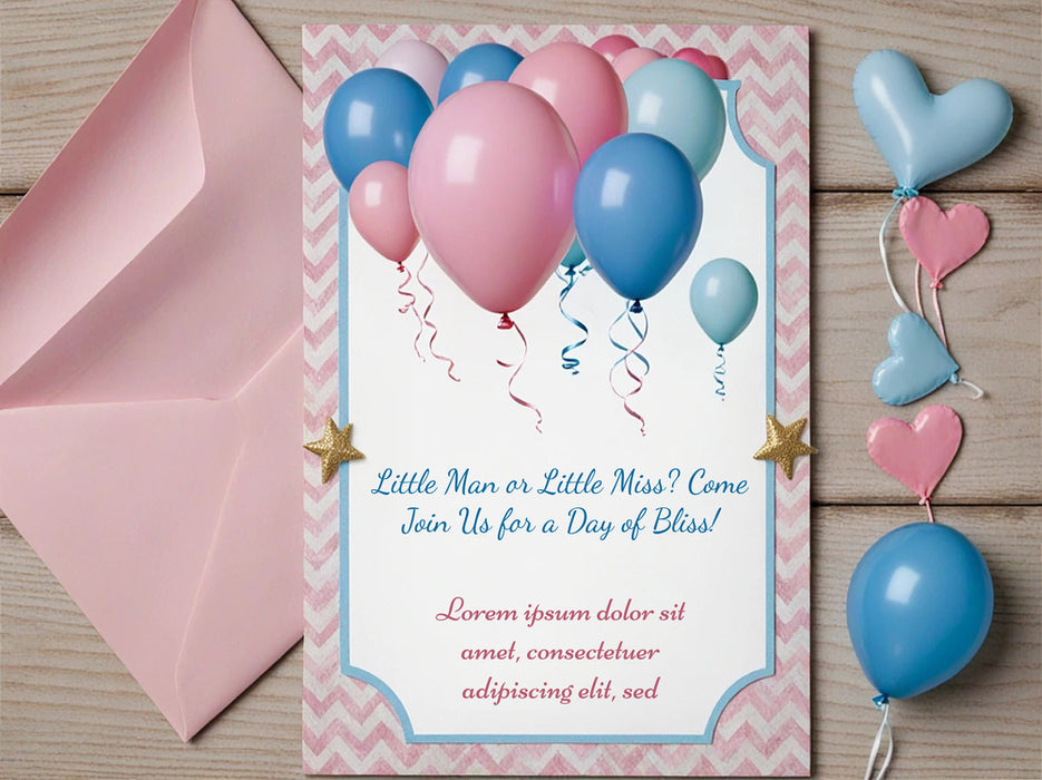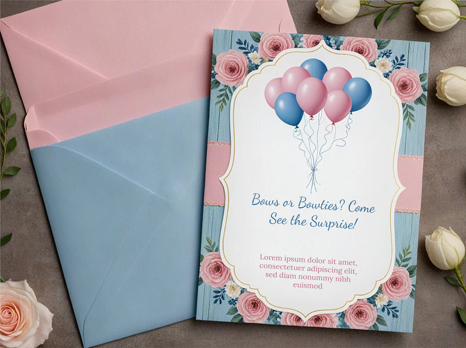 Create and print custom Gender Reveal Invitations online to share your exciting news in style! Choose from fun, elegant, or playful designs, personalize with your event details, and enjoy high-quality printing for a memorable reveal. Perfect for setting the tone for your special moment — with easy ordering and fast delivery!