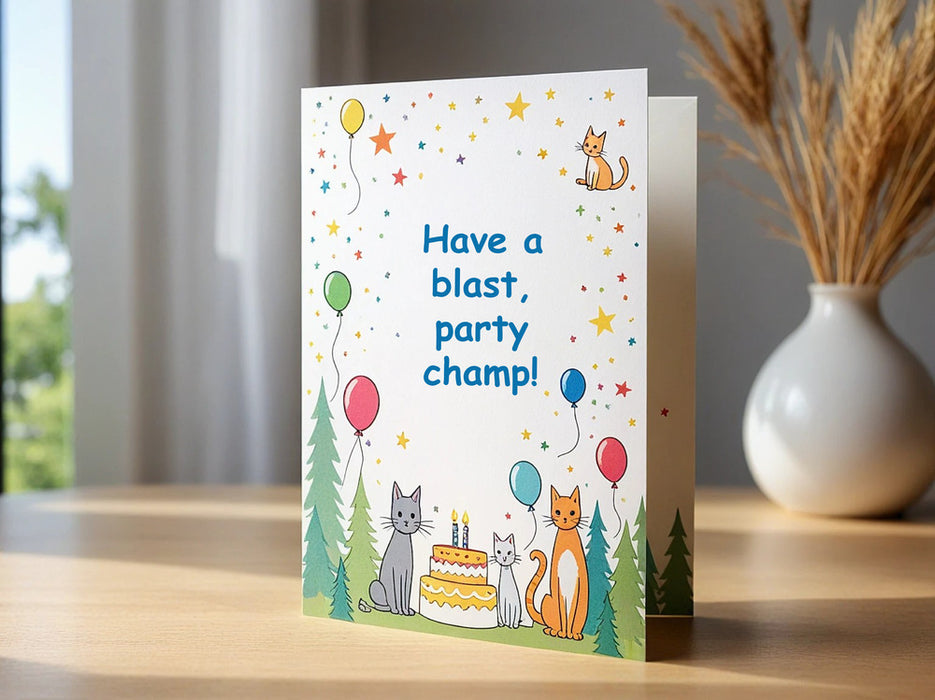 Celebrate their big day with a birthday card that's as special as they are! Our online design and printing service for kids' birthday cards offers endless possibilities. Choose from a fantastic array of themes, from superheroes to animals to princesses, and personalize it with their name, age, photos, and a message just for them. Create a memorable keepsake that shows you truly care, without the hassle of traditional card shopping.