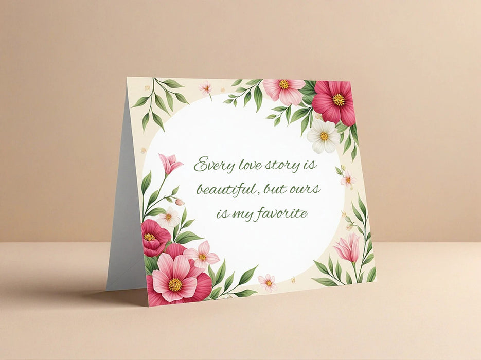 Celebrate your love story with beautifully crafted Love & Romance Cards. Whether you're expressing your affection for a partner, celebrating an anniversary, or surprising someone special “just because,” our online design and print service makes it easy to create heartfelt cards that speak volumes.