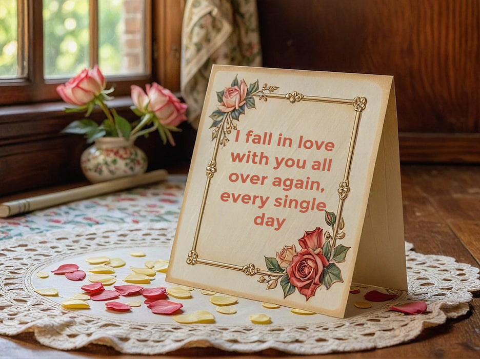 Choose from a variety of romantic styles — from elegant and minimalist to cute, vintage, or passionate designs. Customize your card with personal messages, photos, or meaningful details, then have it professionally printed and delivered with care.
