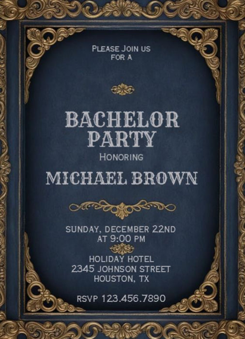 Design and print Printable Bachelor Party Invites online. Personalize stylish templates to create fun and memorable invites that set the tone for an unforgettable celebration.
