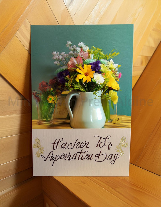 Design and print personalized teacher appreciation cards online! Say thank you to your amazing teachers with a unique card created with our easy-to-use tools. Choose a template or create your own, add your message and student names, and we'll take care of the rest. Show your appreciation in a memorable way!