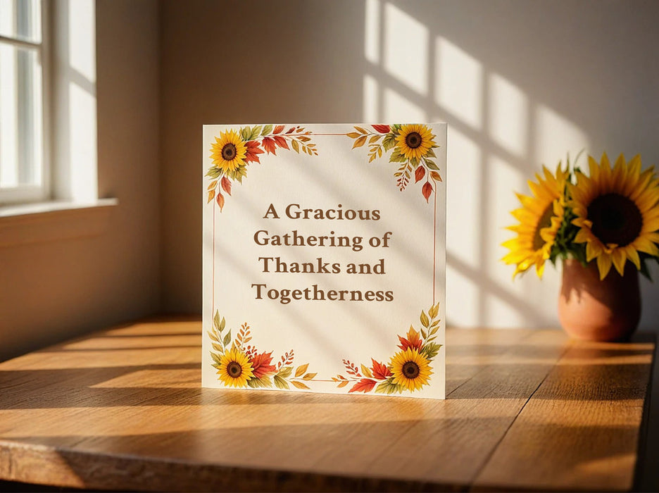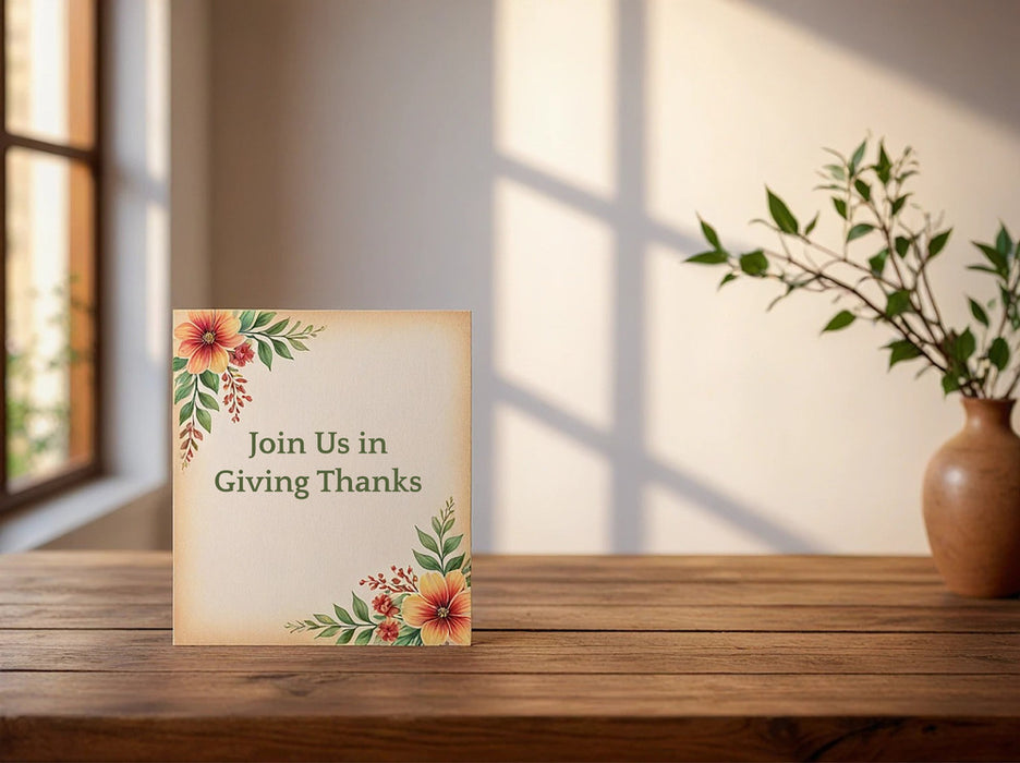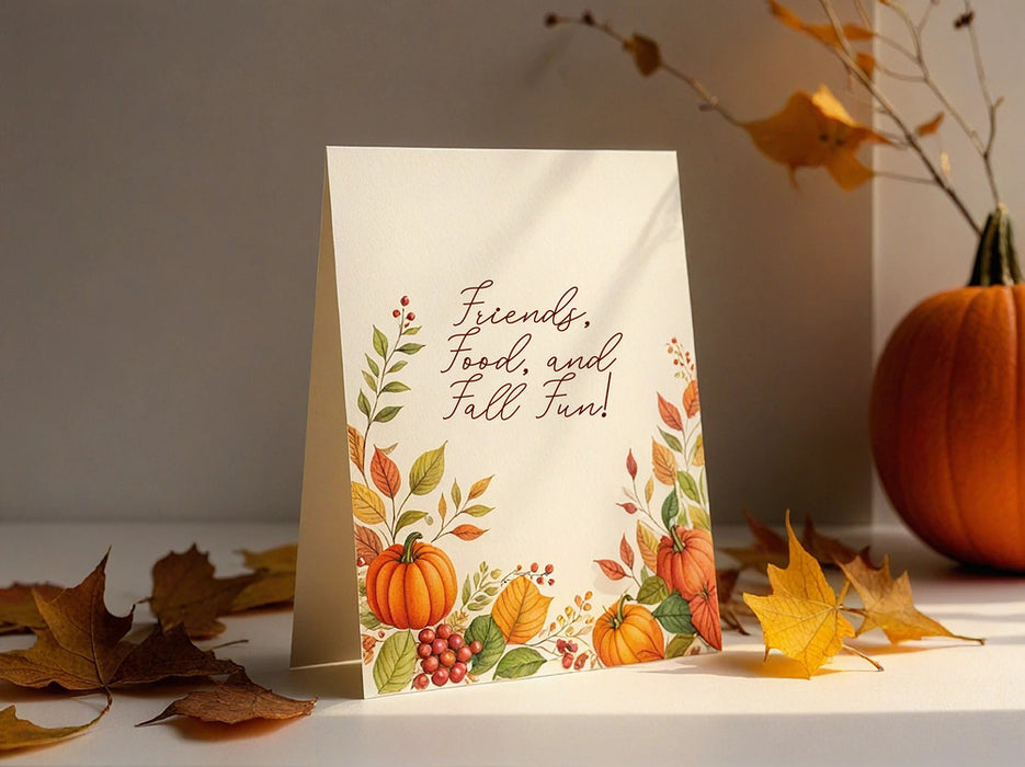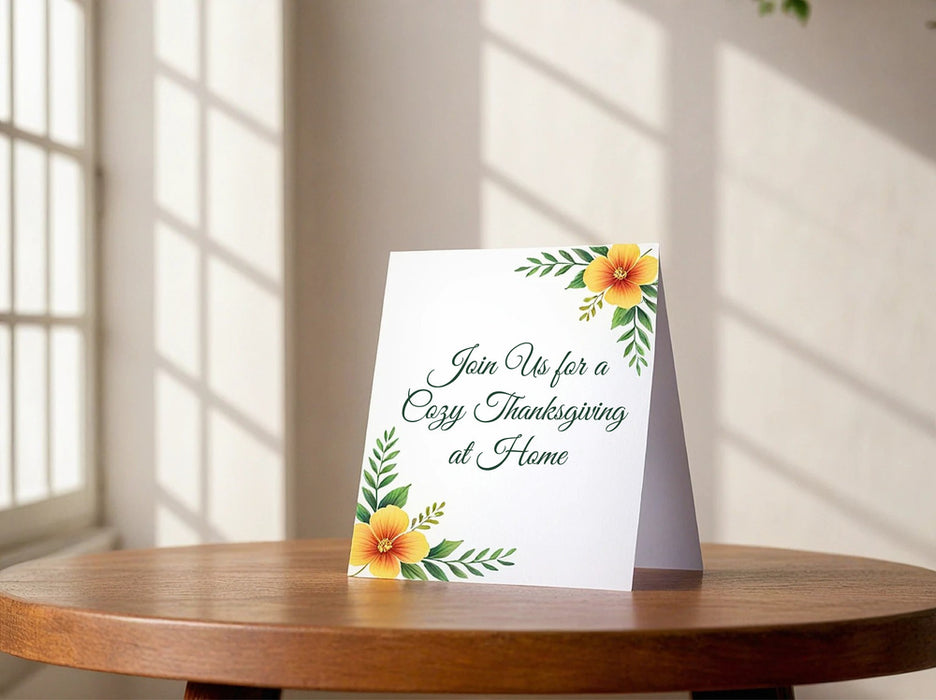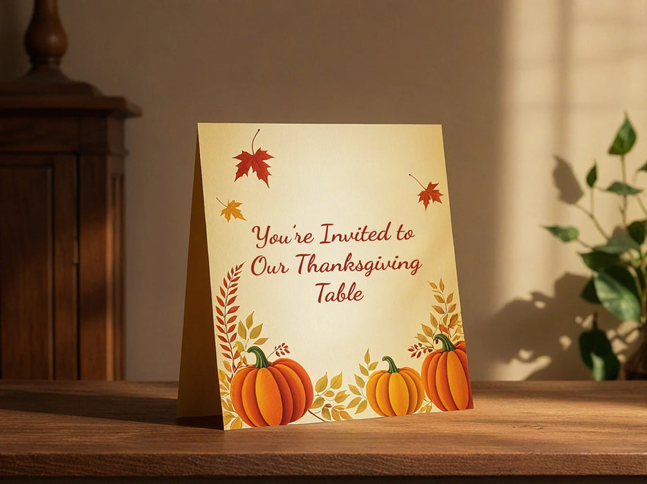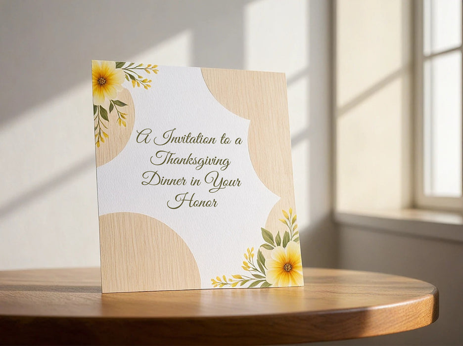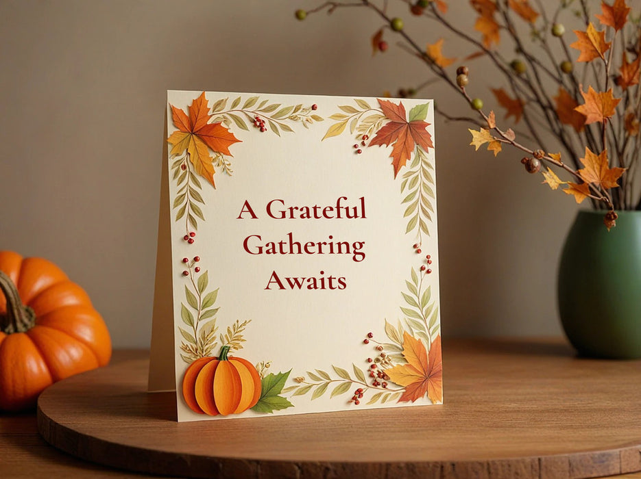 Kick off your Thanksgiving celebration with invitations as thoughtful as your gathering. Whether you're hosting a cozy family dinner, a festive Friendsgiving, or a seasonal get-together, our online design tool makes it easy to create the perfect invitation. Choose from a variety of professionally designed templates featuring warm autumn colors, rustic themes, and elegant fall motifs. Personalize your invitation with custom text, photos, and event details, then have it printed on premium-quality paper for a lasting impression.